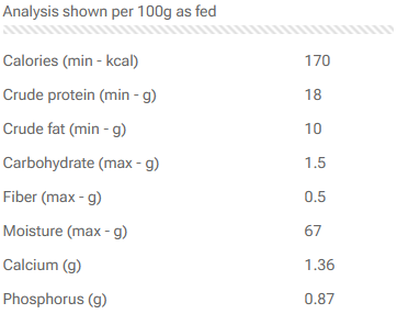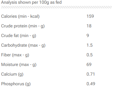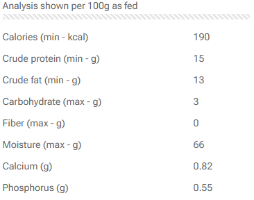 Chicken (meat and bone), green beef tripe, Beef liver, Beef spleen, Beef kidney.