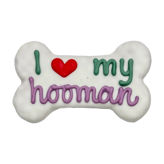 We know how much your pup loves you! Treat your pup to a pawsome I ❤️ my Hooman 6" Bone Dog Cookie from Bosco & Roxy's! This lovely treat is freshly baked in Canada and made with human-grade ingredients that your dog will love!
