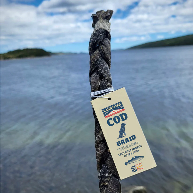 The Land & Sea Cod Braid is a long lasting chew that is an excellent source of protein and collagen, essential nutrients in a healthy dogs diet.