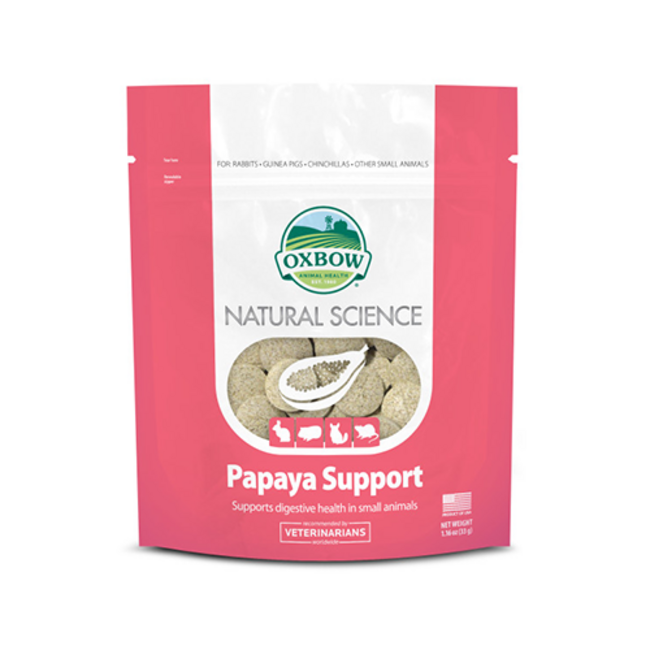 Oxbow's Natural Science Papaya Support is designed to support the digestive health of your pet. Premium ingredients include papaya and pineapple (natural sources of the active enzymes, papain and bromelain) and high fiber timothy hay.